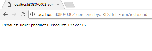 5)Projemizi çalıştıralım ve karşımıza çıkan index.jsp içerisindeki formumuzu dolduralım.Daha sonra verileri gönderdiğimizde web servisimiz üzerinden formdaki gönderdiğimiz verileri ekranda çıktı olarak göreceğiz.
